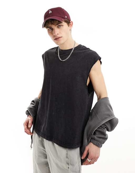 Bershka – Czarny sprany T-shirt worker oversize