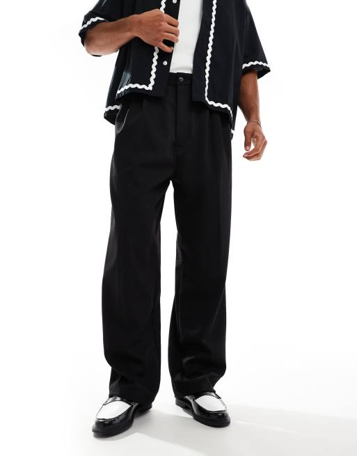 Bershka – Dopasowane czarne spodnie z obszernymi nogawkami