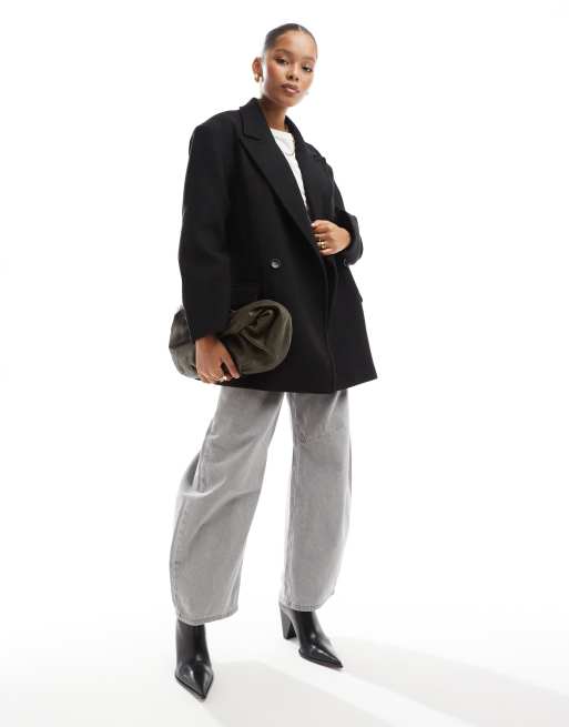 Bershka – Dopasowany czarny płaszcz oversize o pudełkowym kroju