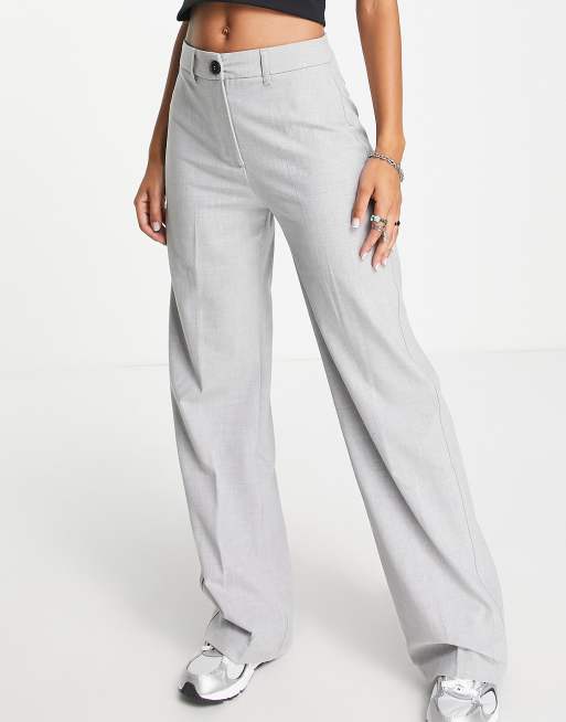 Bershka – Eleganckie luźne spodnie typu dad z szerokimi nogawkami w kolorze szarym