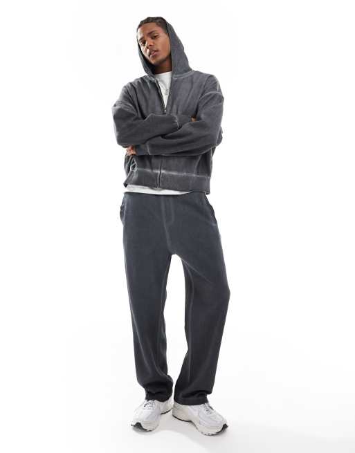 Bershka – Grafitowe sprane joggersy dresowe z szerokimi nogawkami
