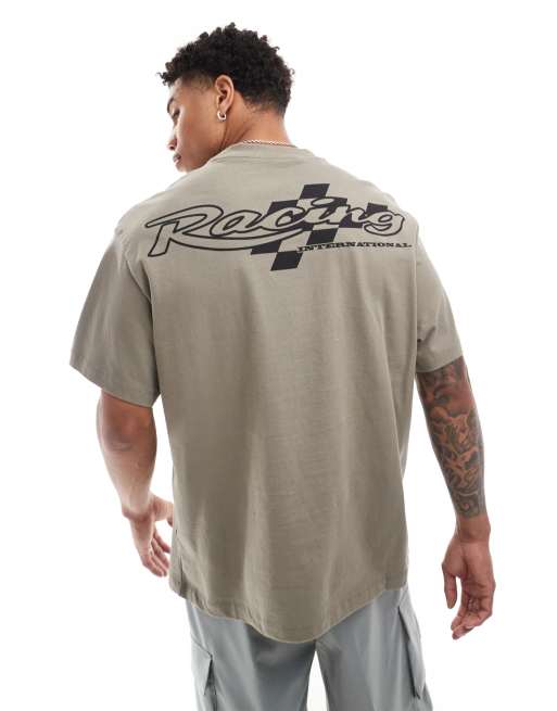 Bershka – Grafitowy T-shirt z motocrossowym nadrukiem