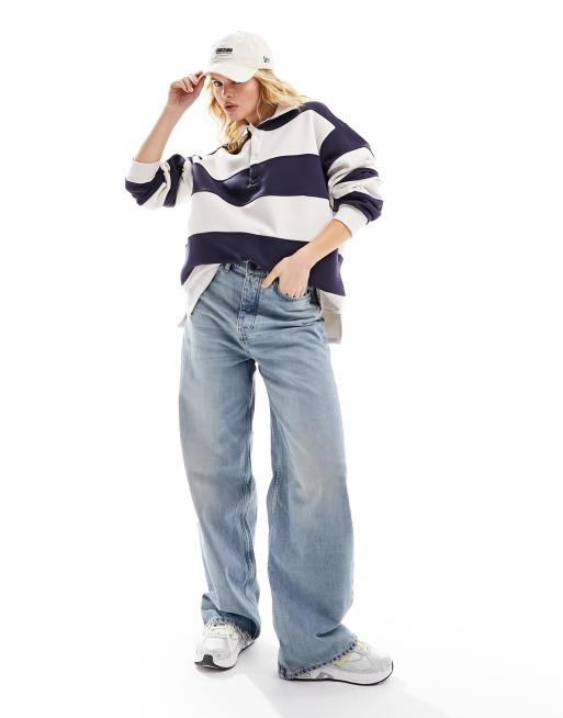 Bershka – Granatowo-biały top w paski z długimi rękawami w stylu rugby