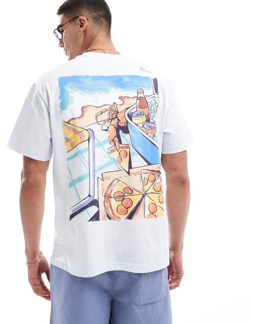 Bershka – Jasnoniebieski T-shirt z nadrukiem z motywem plaży na plecach