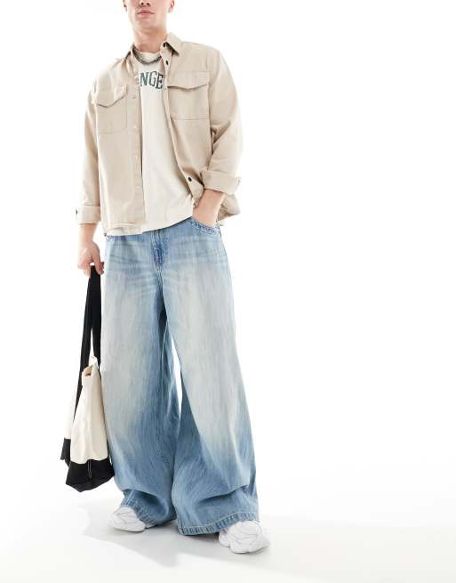 Bershka – Jasnoniebieskie, prążkowane jeansy o obszernym kroju