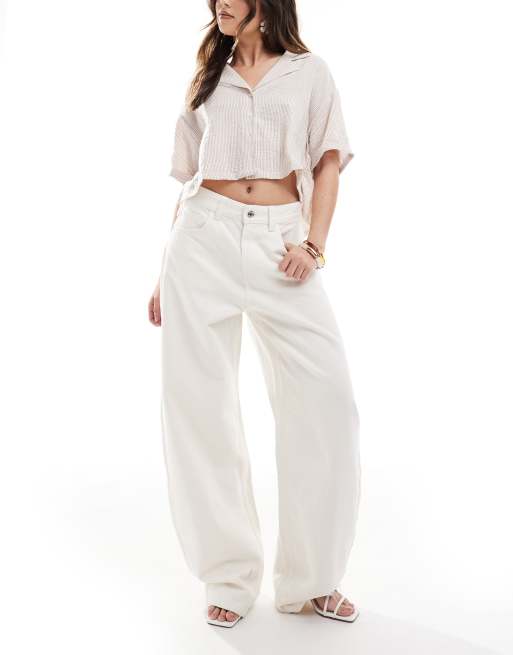 Bershka – Jeansy w kolorze ecru z szerokimi nogawkami i wysokim stanem