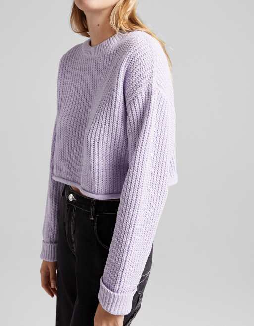 Bershka – Liliowy sweter o pudełkowym kroju z szenilowej dzianiny o grubym splocie