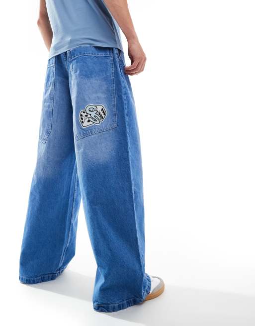Bershka – Niebieskie luźne jeansy typu carpenter