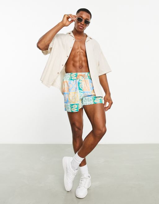 Bershka – Niebieskie szorty kąpielowe w wielokolorowy gobelinowy wzór