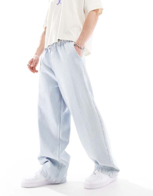 Bershka – Niebieskie wiązane w talii jeansy baggy w paski