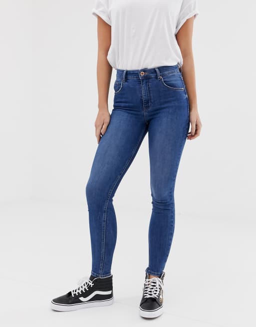 Bershka – Niebieskie jeansy o obcisłym kroju z bardzo wysokim stanem