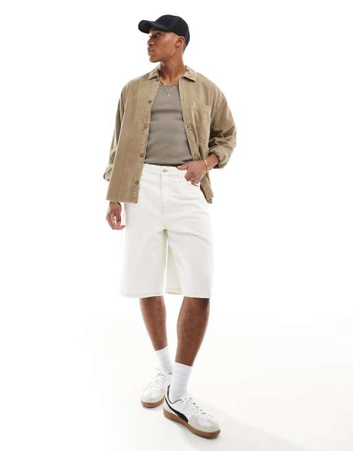Bershka – Obszerne szorty jeansowe w kolorze ecru