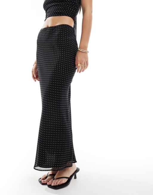 Bershka – Prześwitująca czarna spódnica maxi w groszki, część zestawu