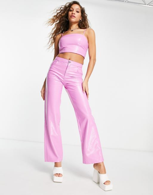 Bershka – Różowe spodnie z prostymi nogawkami, z imitacji skóry krokodyla – część zestawu