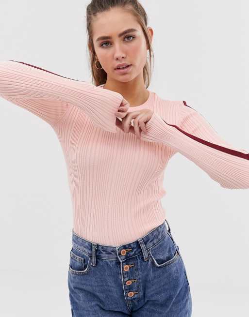 Bershka – Różowy dzianinowy top z długim rękawem z paskiem po boku