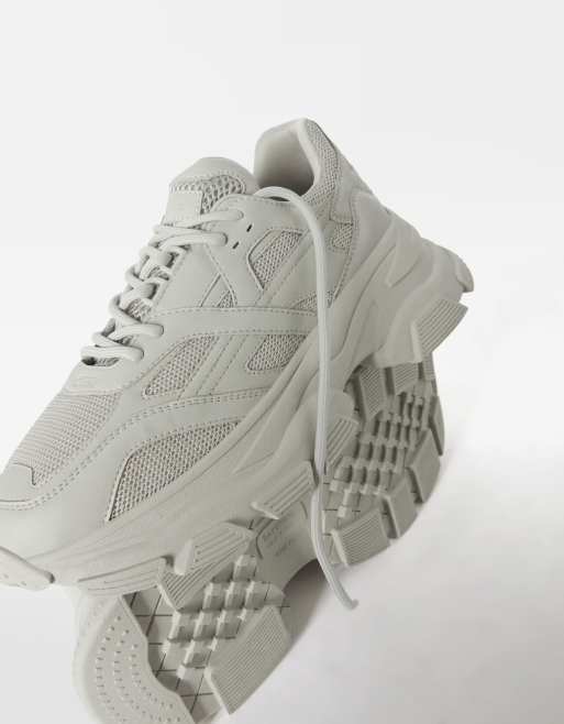 Bershka – Szarobeżowe buty sportowe ze żłobioną podeszwą