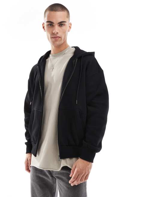 Bershka – Zapinana na zamek bluza dresowa z kapturem w spranym czarnym kolorze