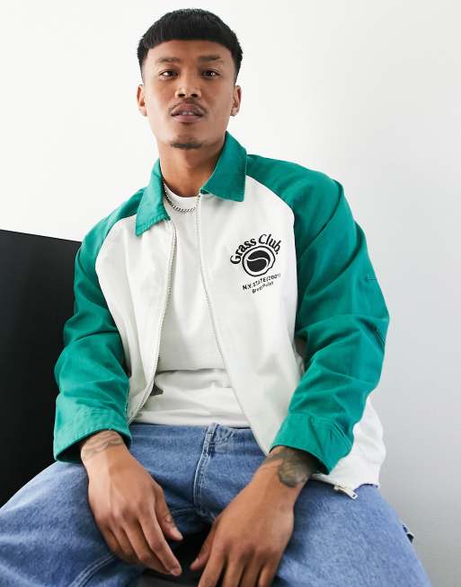 Bershka – Zielona kurtka w uczelnianym stylu