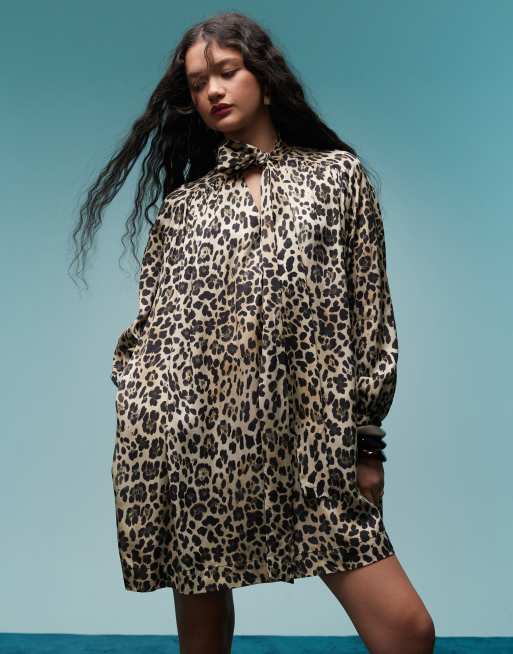 Bimba y Lola – Cętkowana luźna sukienka mini z wiązaniem na dekolcie
