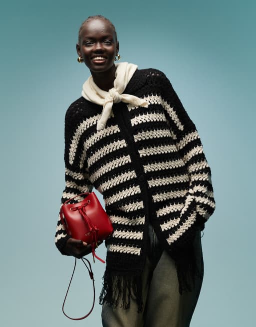 Bimba Y Lola – Czarny dzianinowy kardigan oversize ze wzorem w białe paski