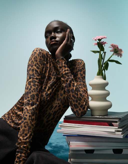 Bimba y Lola – Siateczkowy top ze wzorem w panterkę i długimi rękawami