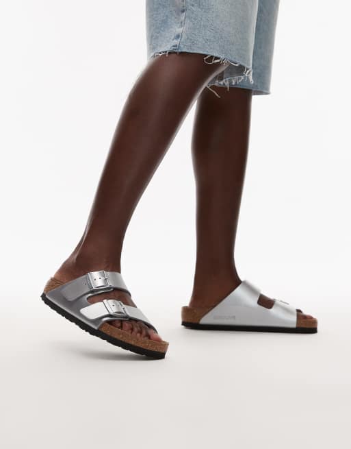 Birkenstock – Arizona Birko-Flor – Srebrne sandały