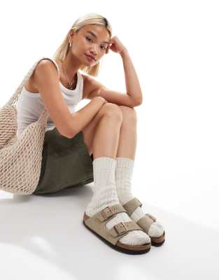 Birkenstock – Arizona – Zamszowe płaskie sandały w kolorze szarobrązowym