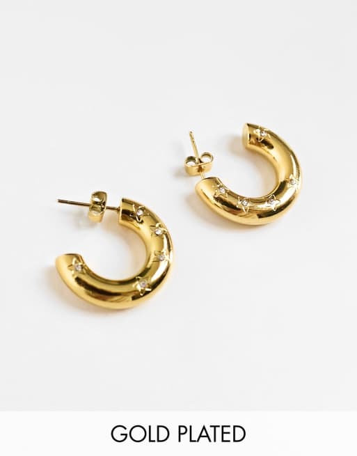 Bohomoon – Spellbound – Platerowane złotem kolczyki kółka z gwiazdkami z kryształków