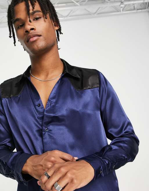 Bolongaro Trevor – Satynowa koszula w granatowym kolorze