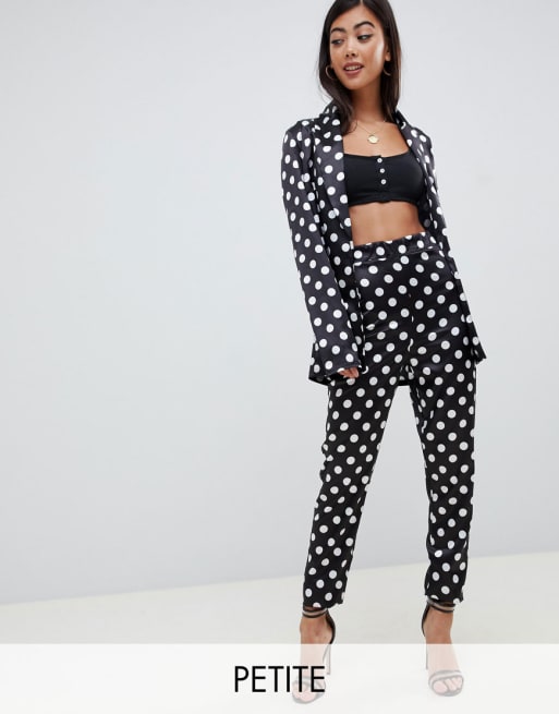 Boohoo Petite – Satynowa marynarka i spodnie w grochy