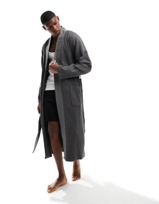 BOSS Bodywear – Szary szlafrok kimono o waflowej strukturze