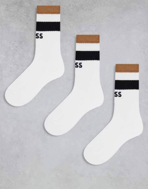 BOSS Bodywear – Zestaw 3 par białych skarpetek z paskami i logo