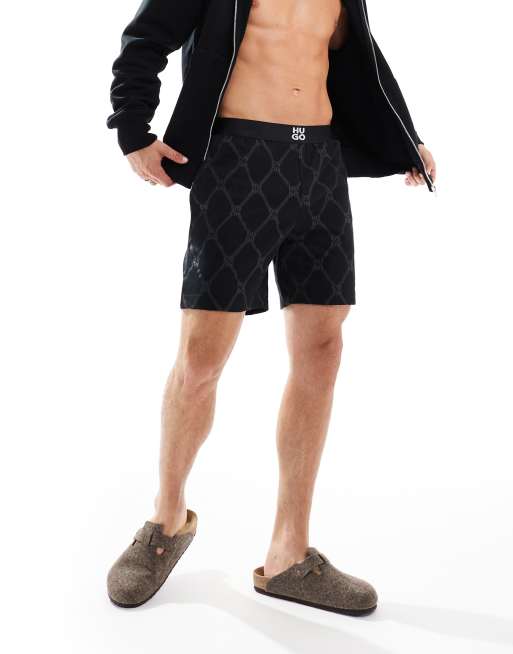 HUGO Bodywear – Czarne szorty z nadrukiem z monogramem z łańcuszkiem