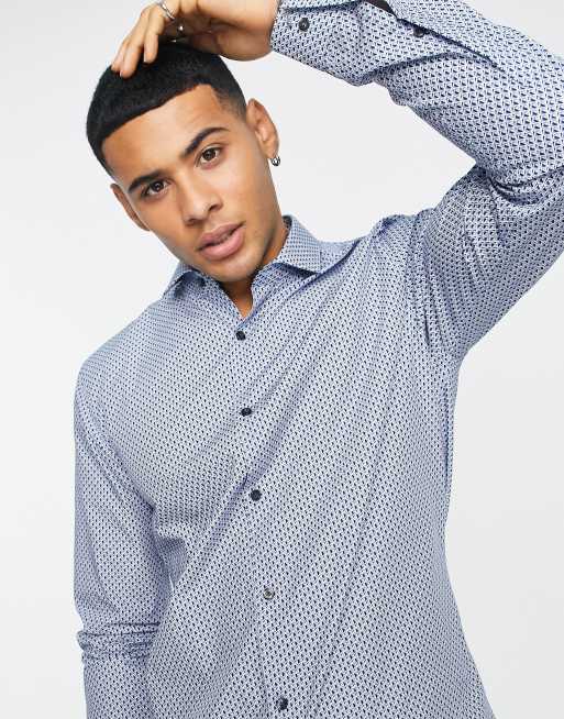 HUGO – Bardzo dopasowana formalna koszula w drobny wzór