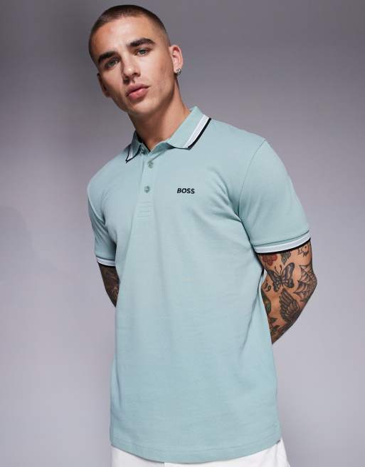 BOSS Green – Paddy – Jasnozielona koszulka polo z piki z lamówkami i logo