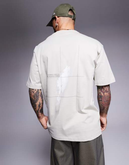 BOSS Orange – Beżowy T-shirt o luźnym kroju z nadrukiem na plecach