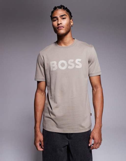 BOSS Orange – Frozen – Ciemnobeżowy T-shirt o regularnym kroju z logo na piersi