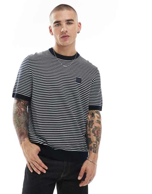 BOSS Orange – Kanache – Dzianinowy T-shirt o luźnym kroju w granatowe paski
