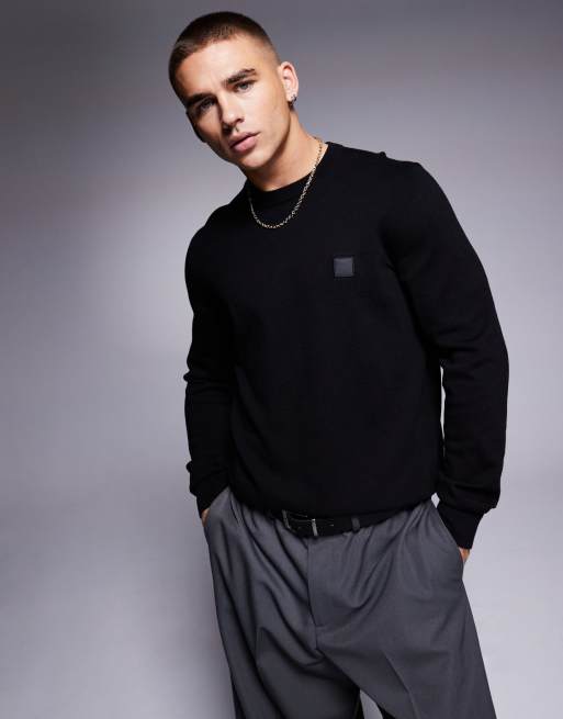 BOSS Orange – Kanovano – Czarny sweter o regularnym kroju z logo z bawełnianej dzianiny