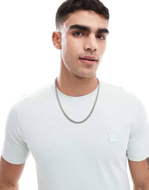 BOSS Orange – Tales – Jasnoniebieski T-shirt o luźnym kroju z logo w ramce