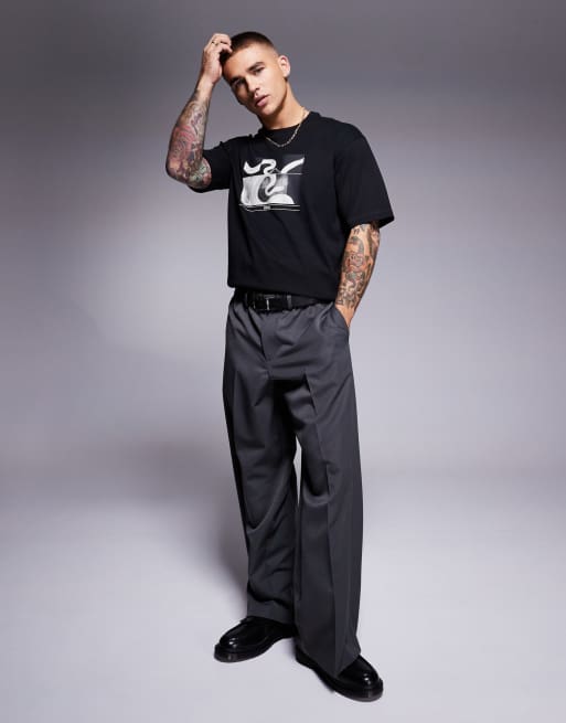 BOSS Orange – Te_Barragan X-Ray – Czarny luźny T-shirt z nadrukiem z logo z motywem węża