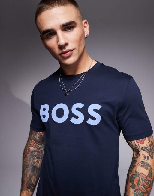 BOSS Orange – Thinking Large – Granatowy T-shirt o regularnym kroju z logo na klatce piersiowej