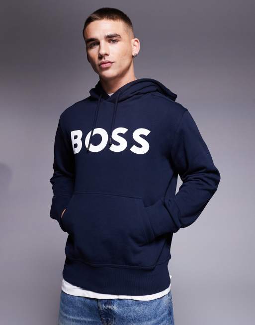 BOSS Orange – Webasic – Granatowa bluza o luźnym kroju z kapturem i dużym logo na klatce piersiowej