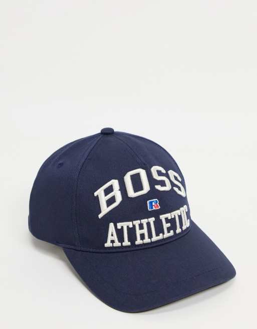 Boss x Russell Athletic – Feagle – Granatowa czapka z daszkiem w stylu uczelnianym