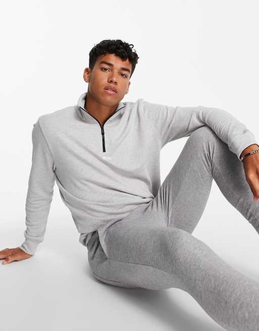 BOSS – Zapper – Szara bluza dresowa z zamkiem pod szyją