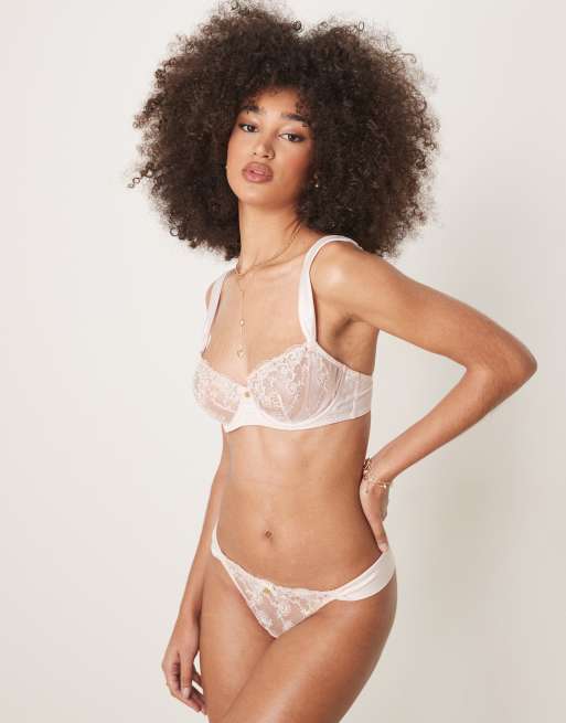Boux Avenue – Adalina – Perłowe satynowe stringi z haftowanym wzorem