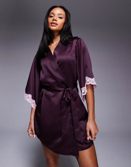 Boux Avenue – Amelia – Porzeczkowoczerwony satynowy szlafrok z koronką