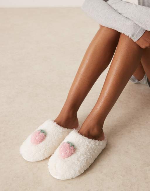 Boux Avenue – Kapcie w kolorze kości słoniowej z motywem truskawki
