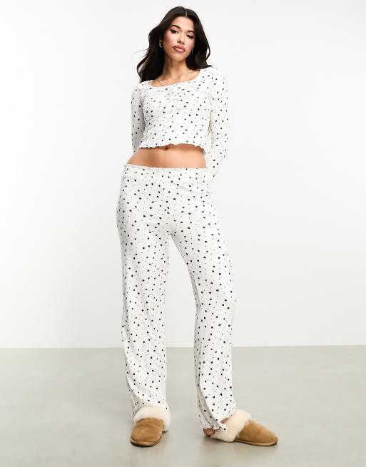 Boux Avenue – Prążkowana piżama z topem i spodniami z szerokimi nogawkami we wzór w serca