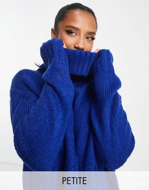 Brave Soul Petite – Cattio – Niebieski krótki sweter o pudełkowym kroju z odwijanym golfem